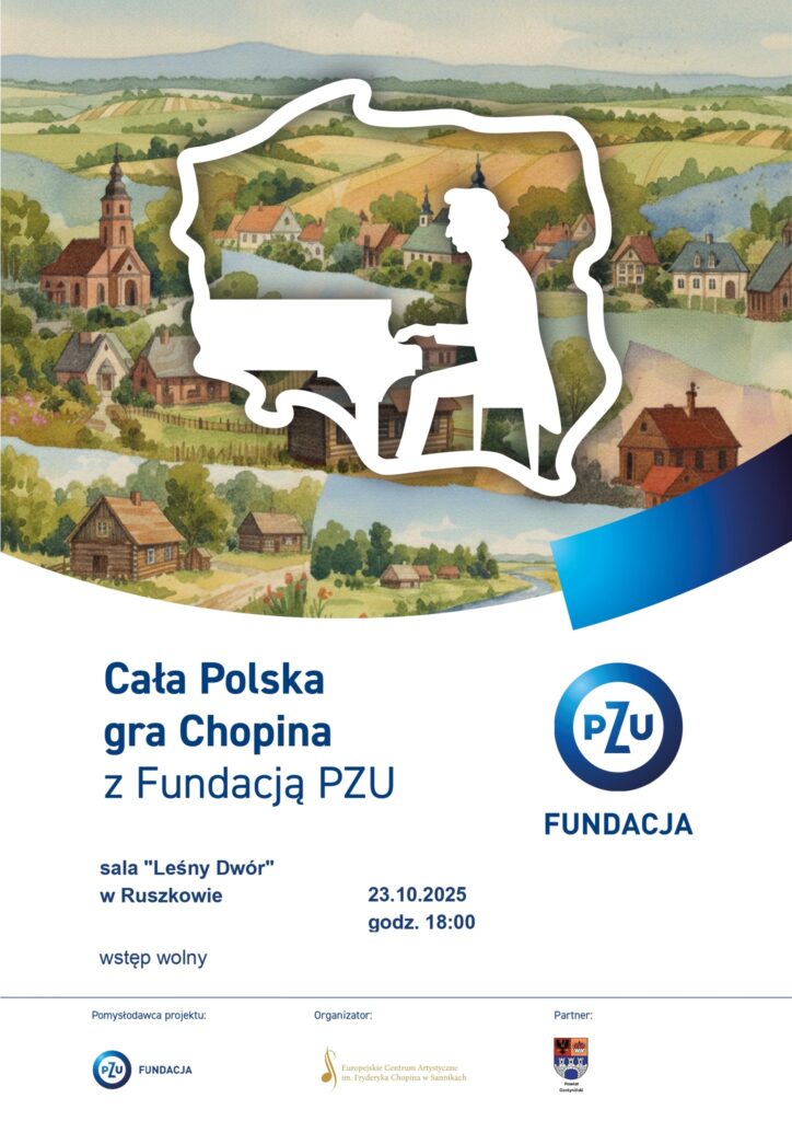 Posted on 2025-10-14 by adminZaproszenie na Koncert Chopinowski Zarząd Powiatu Gostynińskiego zaprasza na koncert Chopinowski w wykonaniu prof. dr hab. Mariusza Drzewickiego. Koncert odbędzie się 23 października 2025 r. o godzinie 18:00 w sali „Leśny Dwór” w Ruszkowie, Ruszków 13, 09-500 Gostynin. Wstęp wolny.